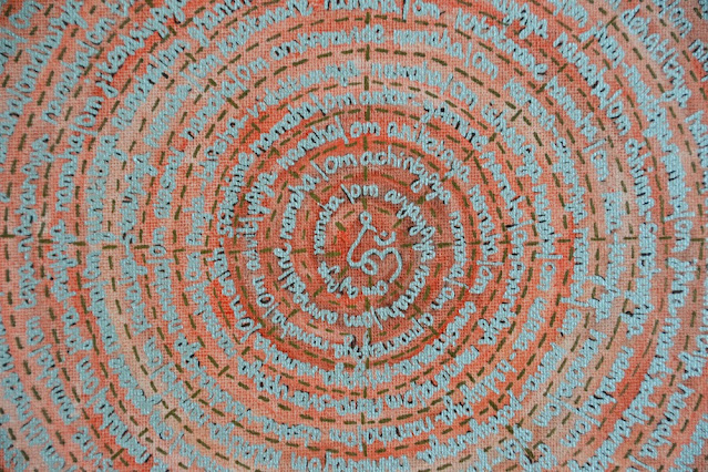 I’ve recently learned about Shri Chinmaya Ashtottara Shata Namavali, a hymn of 108 names in praise of Swami Chinmayananda. While reflecting on the meaning of the hymn, I found myself painting a mandala with the 108 glories.