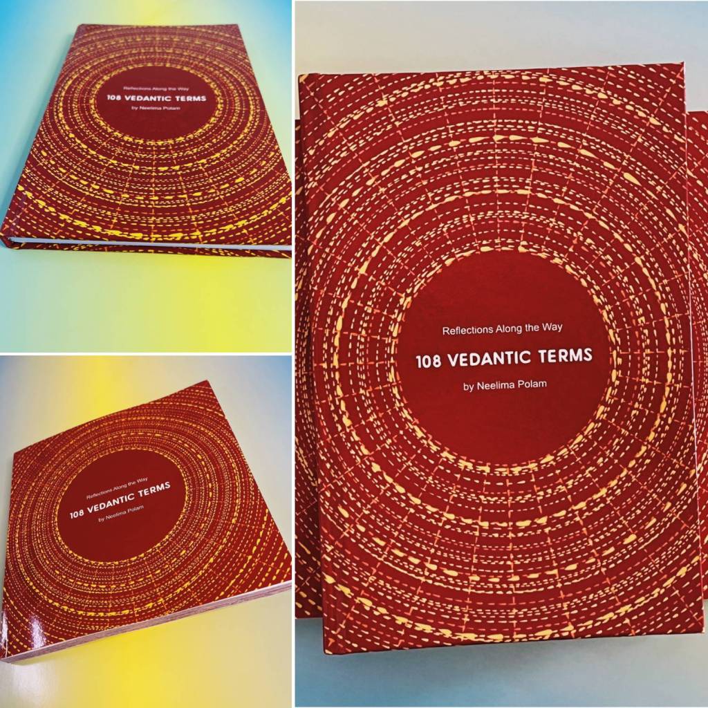Earlier this month, I had the opportunity to offer the first copies of 108 Vedantic Terms book to Swami Swaroopananda and Swami Dheerananda. I feel blessed to express gratitude to my guru. I am donating all proceeds from the sale of this book to Chinmaya Mission© Washington Regional Center.