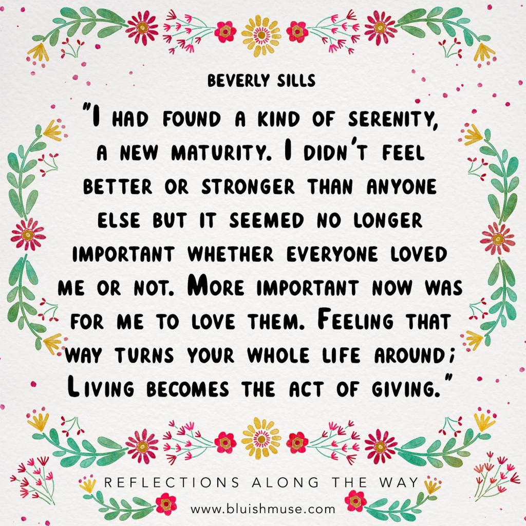 “I had found a kind of serenity, it seemed no longer important whether everyone loved me or not. More important now was for me to love them. Feeling that way turns your whole life around; living becomes the act of giving.”