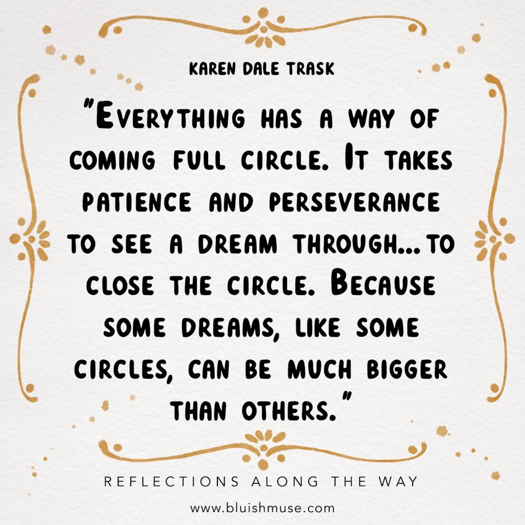 “Everything has a way of coming full circle. It takes patience and perseverance to see a dream through…to close that circle. Because some dreams, like some circles, can be much bigger than others.”