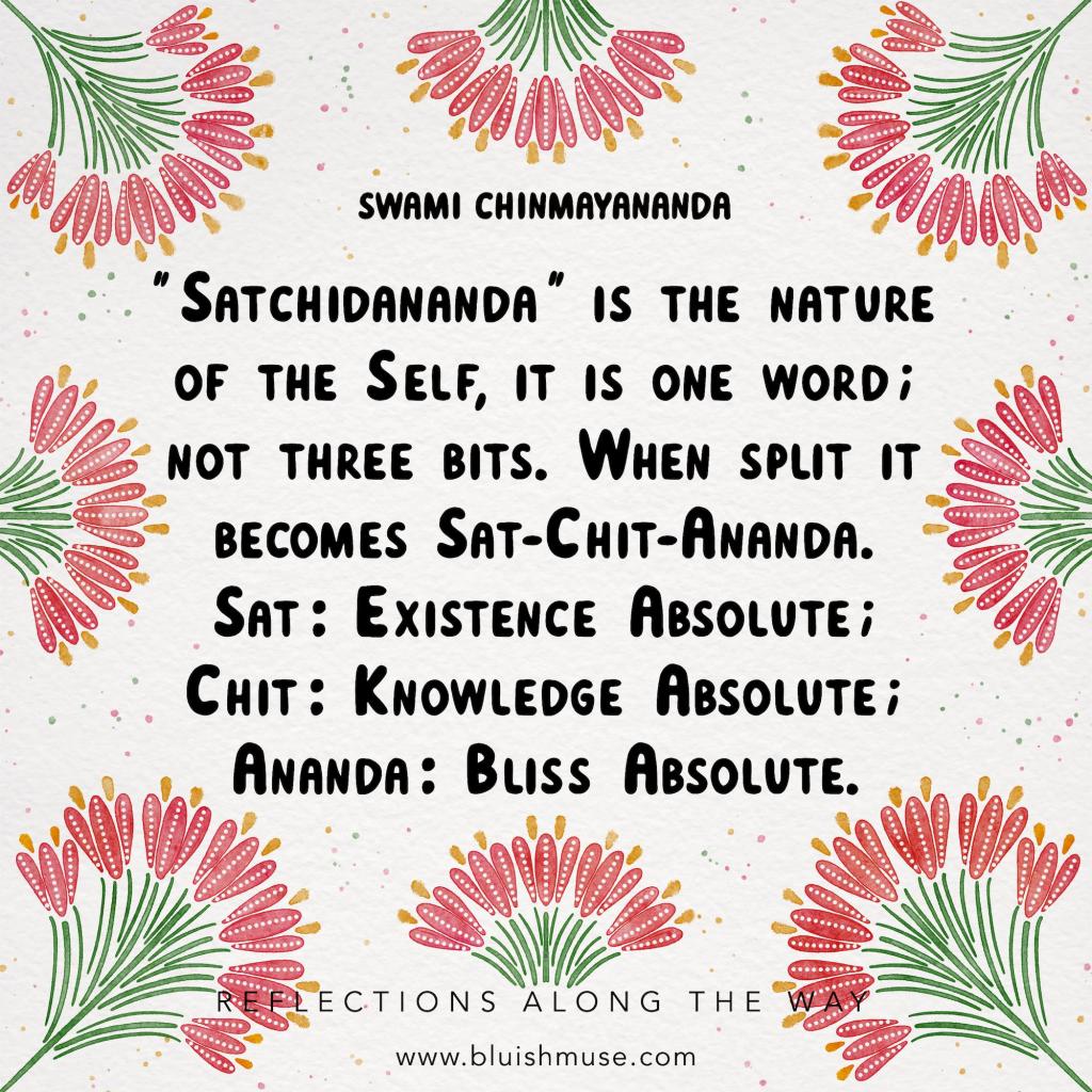 “Satchidananda” is the Nature of the Self, it is one word; not three bits. When split it becomes Sat-Chit-Ananda. Sat: Existence Absolute; Chit: Knowledge Absolute; Ananda: Bliss Absolute.